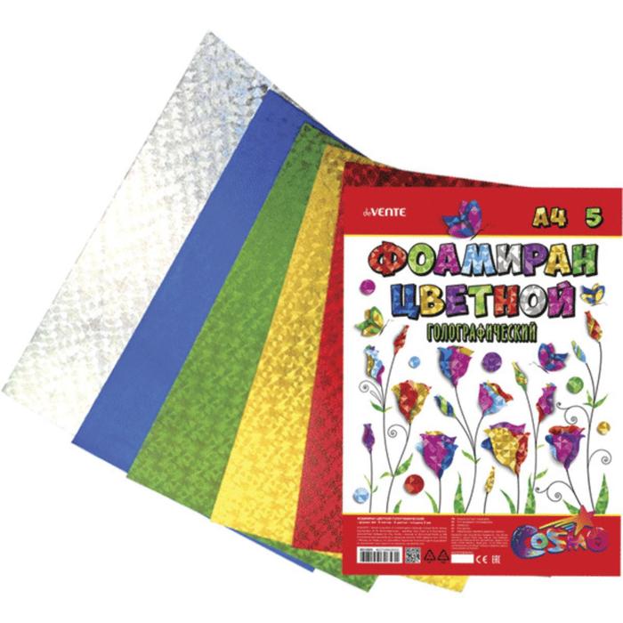 Фоамиран голографический, набор А4, 2 мм, deVENTE, 5 листов х 5 цветов