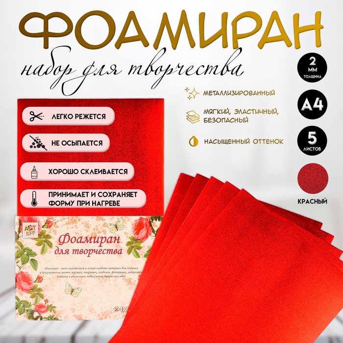 Фоамиран набор для творчества «Арт Узор. Металлизированный красный», 5 листов, 2 мм, формат А4