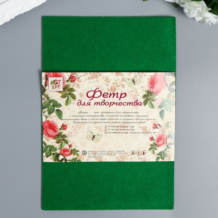 Фетр жесткий 1 мм "Летняя зелень" набор 10 листов формат А4