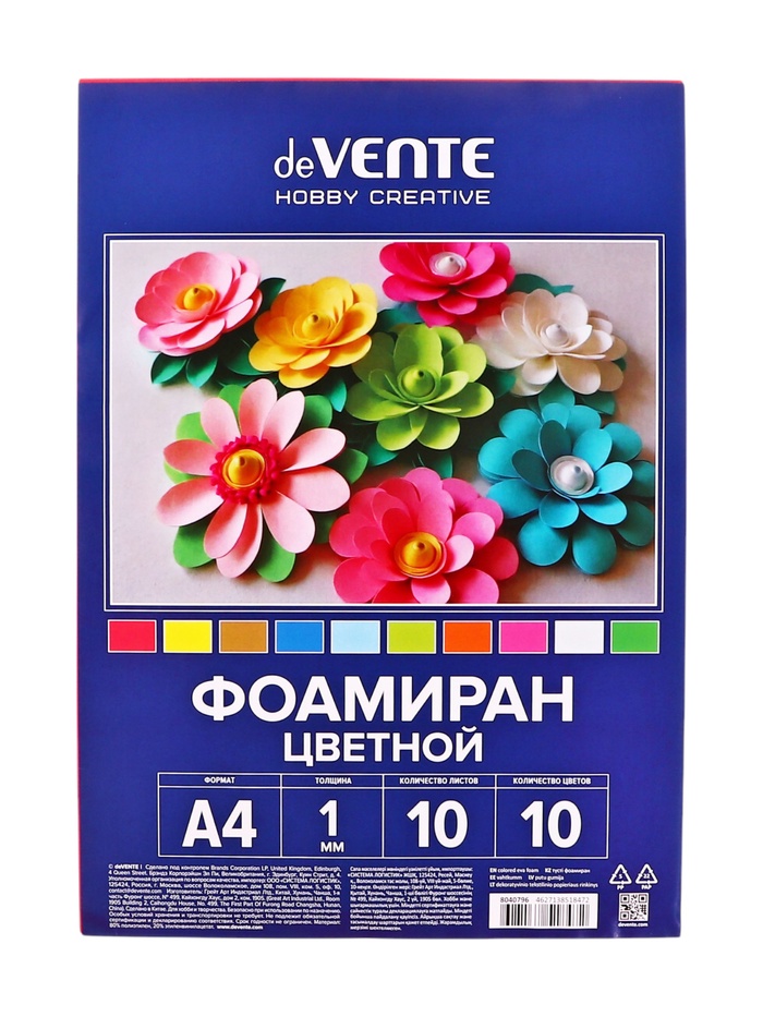 Фоамиран цветной deVENTE, набор А4, 1 мм, 10 листов × 10 цветов