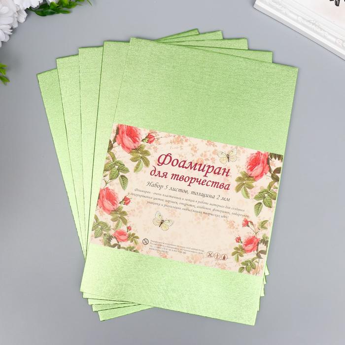 Фоамиран металлизированный «Зелёный» 2 мм формат А4 набор 5 листов