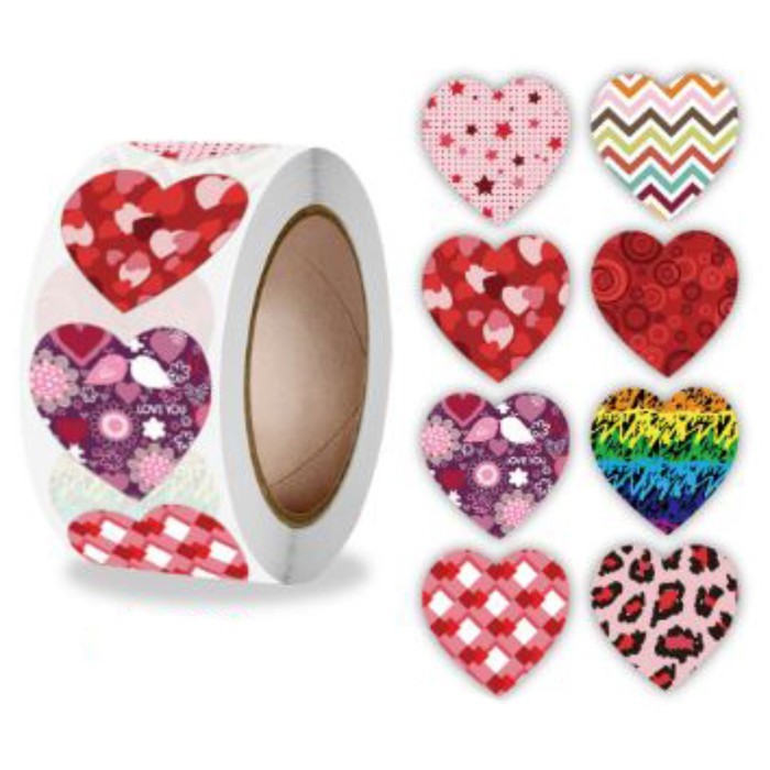 Наклейка бумага «Разные сердечки», d=2.5 см, 500 шт. в рулоне, 3×6.5×6.5 см