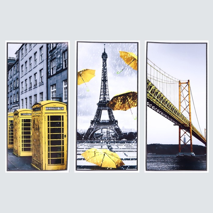 Наклейка интерьерная триптих «Достопримечательности», набор 3 листа, 29.5×61 см