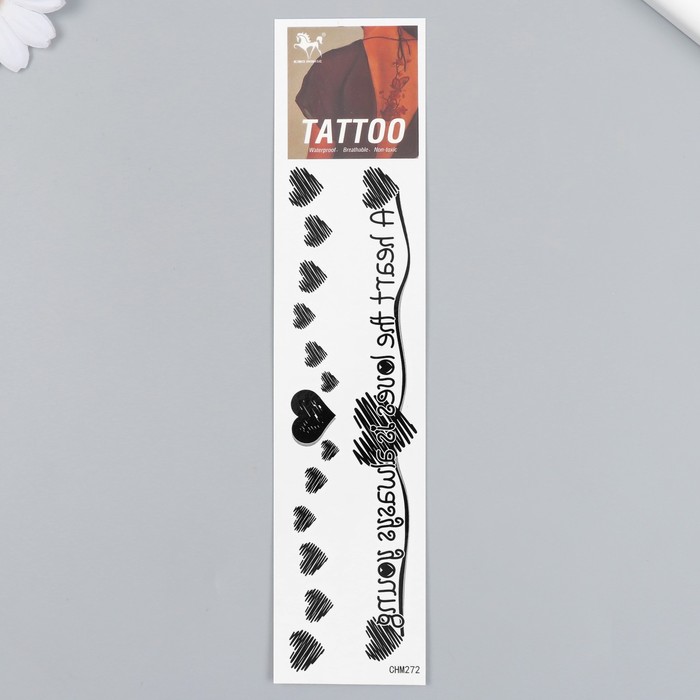 Переводные тату чёрные «Браслеты из сердец», временные татуировки, 20.8×4.7 см