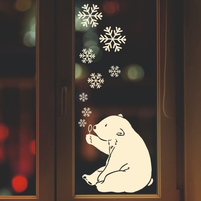 Интерьерная наклейка на окна «Мишка и снежинки», 40×47 см