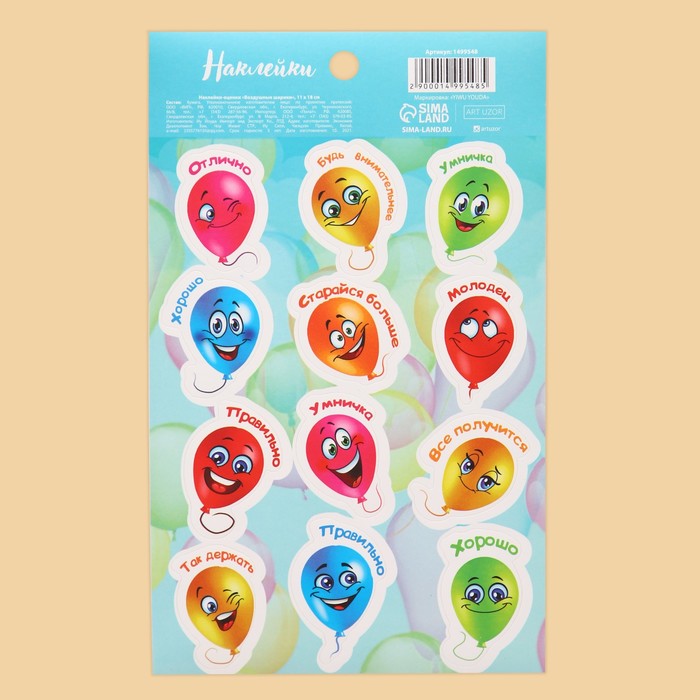 Наклейки-оценки «Воздушные шарики», 11×18 см