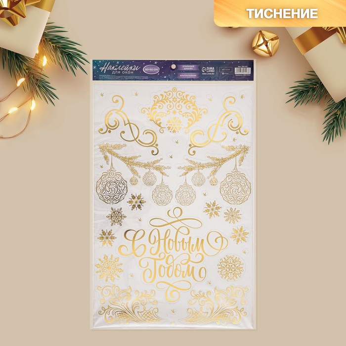 Наклейки новогодние виниловые с фольгированием «Зимний праздник», 30 х 50 см