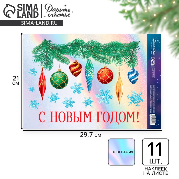 Наклейки новогодние, интерьерные «Ёлочные игрушки», голография 21 х 29.7 см