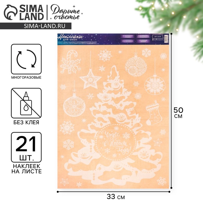 Наклейки на окна многоразовые «С Новым годом», 33 х 50 см