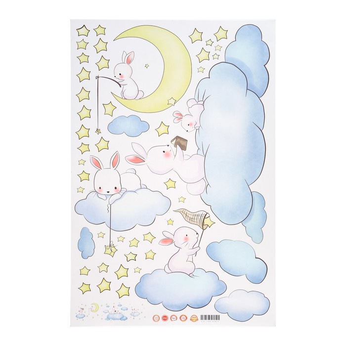 Наклейка интерьерная цветная «Зайчики на облаках», 60×90 см