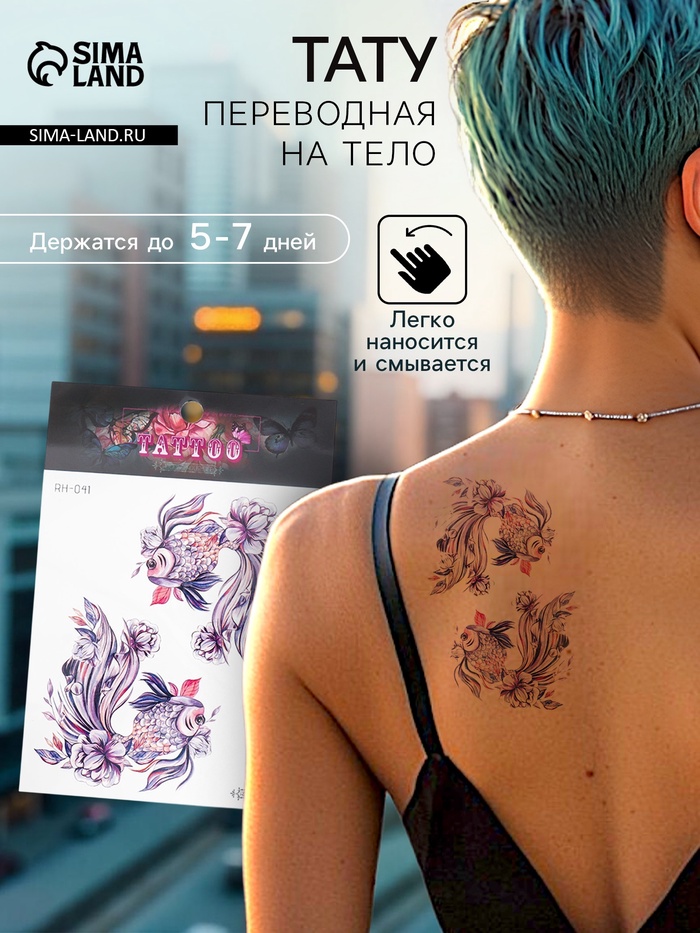 Переводные тату на тело цветные «Рыбки в цветах», 10.5×12 см
