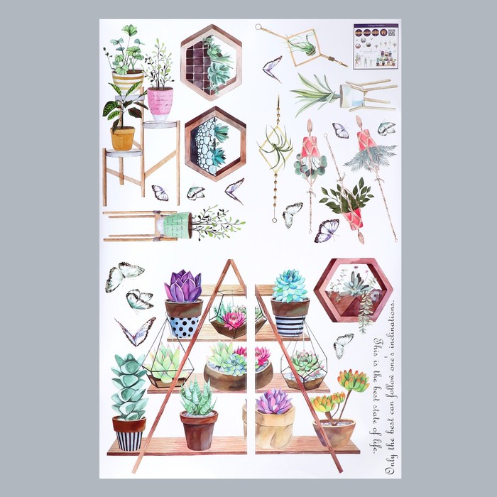 Наклейка интерьерная цветная «Комнатные растения на подставке», 60×90 см