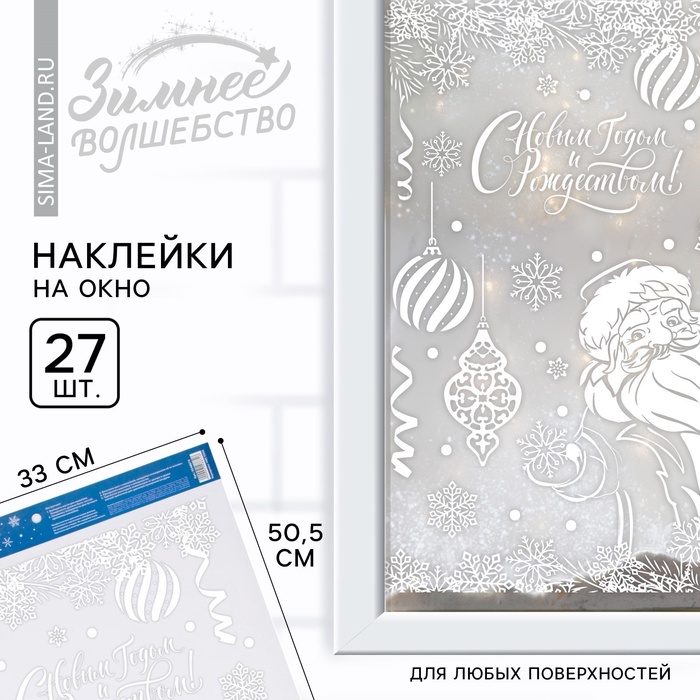 Наклейки новогодние на окна «Дед Мороз», на Новый год, 33 х 50.5 см