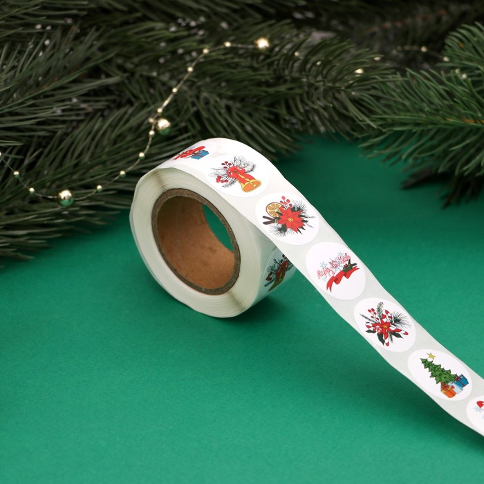 Наклейка бумага «Рождественские мордашки», d=2.5 см, 500 шт. в рулоне, 3×6.5×6.5 см