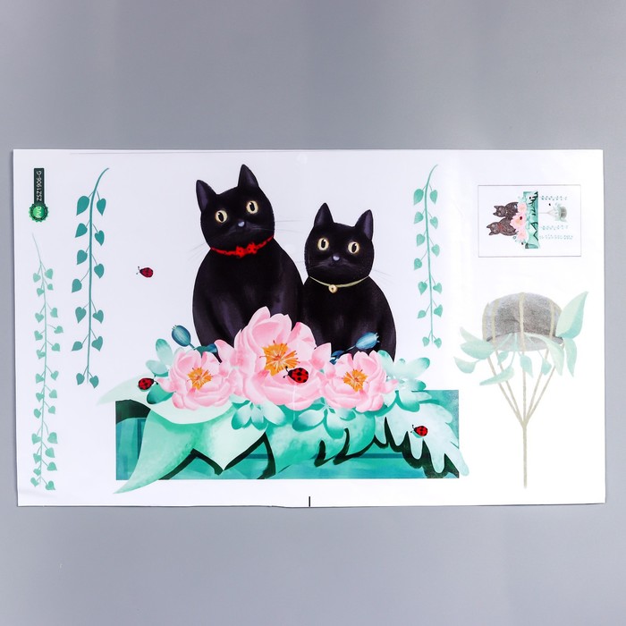 Наклейка интерьерная цветная «Черные котики и цветы», пластик, 30×60 см