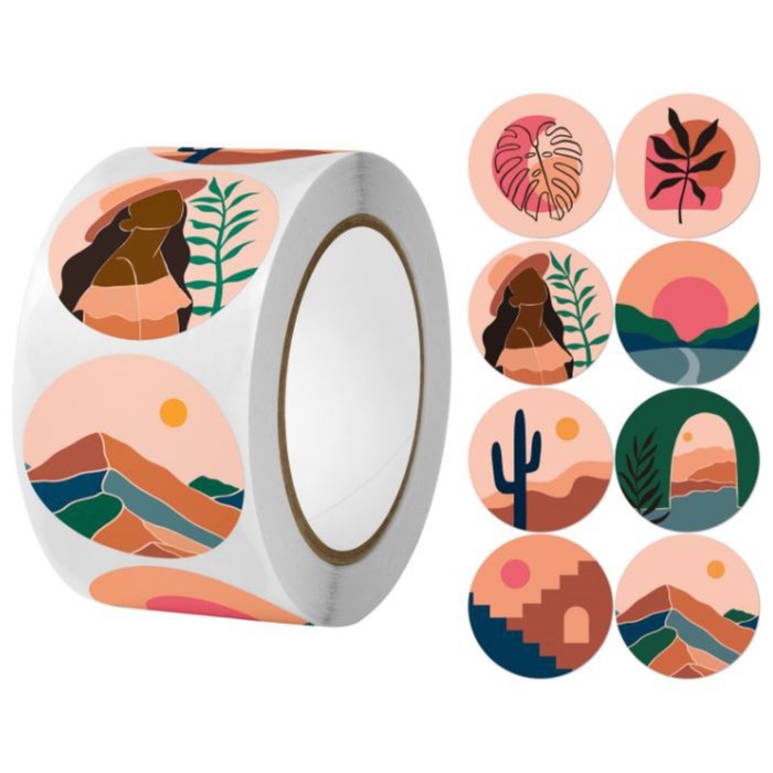 Наклейка бумага «Абстракция. Природа», d=2.5 см, 500 шт. в рулоне, 3×6.5×6.5 см
