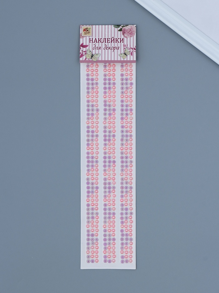 Наклейка-стразы «Жемчужины и цветочки», пластик, розово-сиреневые, 7×31 см