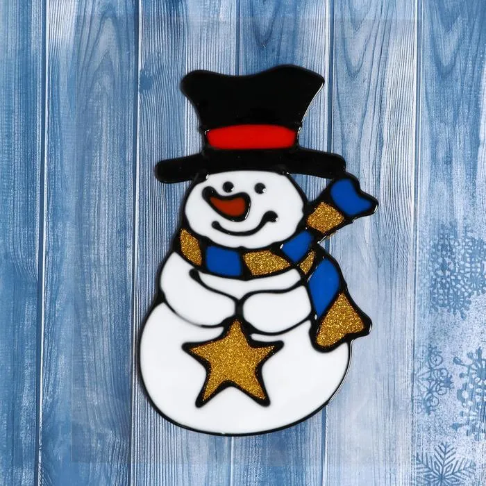 Наклейка на стекло «Снеговик в полосатом шарфе со звездой», 9.5×15 см