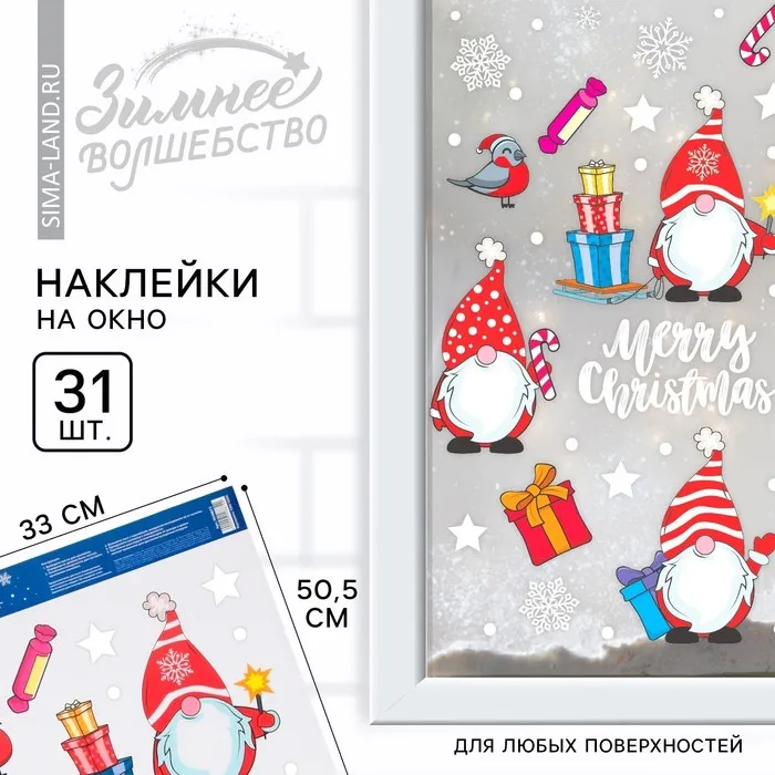 Наклейки новогодние на окна «Гномики», на Новый год, 33 х 50,5 см
