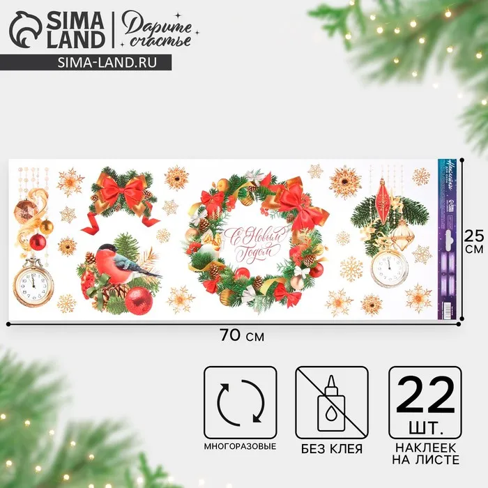 Виниловые наклейки на окна «Новогодний венок», многоразовые, 70 х 25 см
