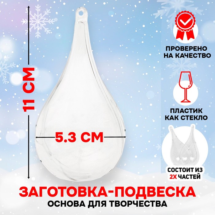 Заготовка - подвеска, раздельные части «Капля», размер собранной: 5,3 × 5,3 × 11 см.