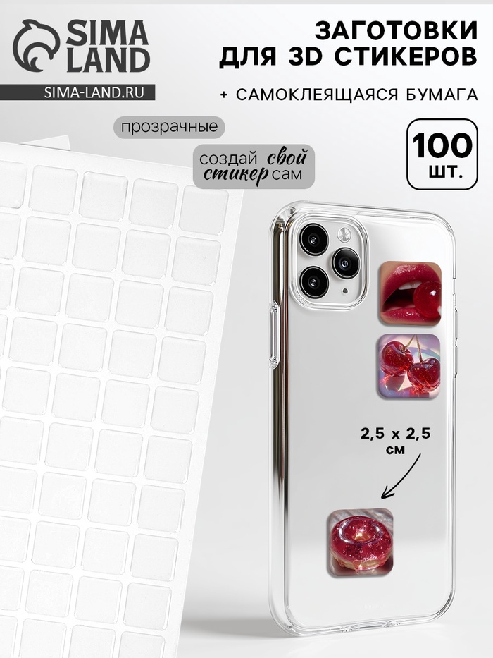 Стикеры эпоксидные прозрачные заготовки 3D 100 шт 2,5 x 2,5 см + самоклеящаяся бумага