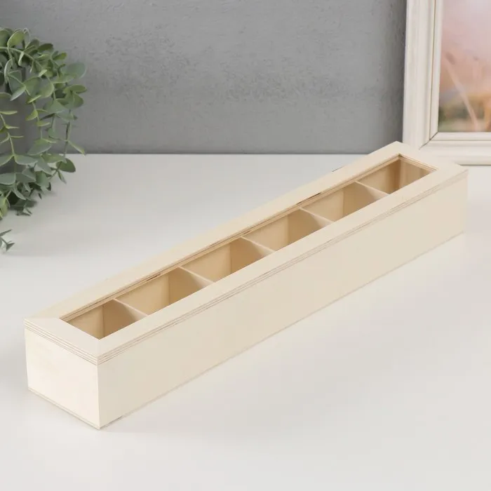 Шкатулка для росписи дерево со стеклом и делениями «Прямоугольная», для творчества, декора, без замка, 45×8.5×6.5 см
