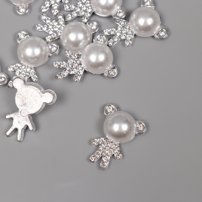 Декор для творчества пластик «Мишка со стразами», серебро, набор 10 шт., 2.5×2×1 см