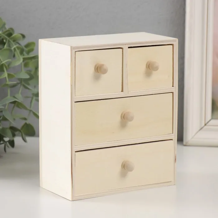Шкатулка для росписи "Комод" 4 ящика 14х15,5х7,5 см