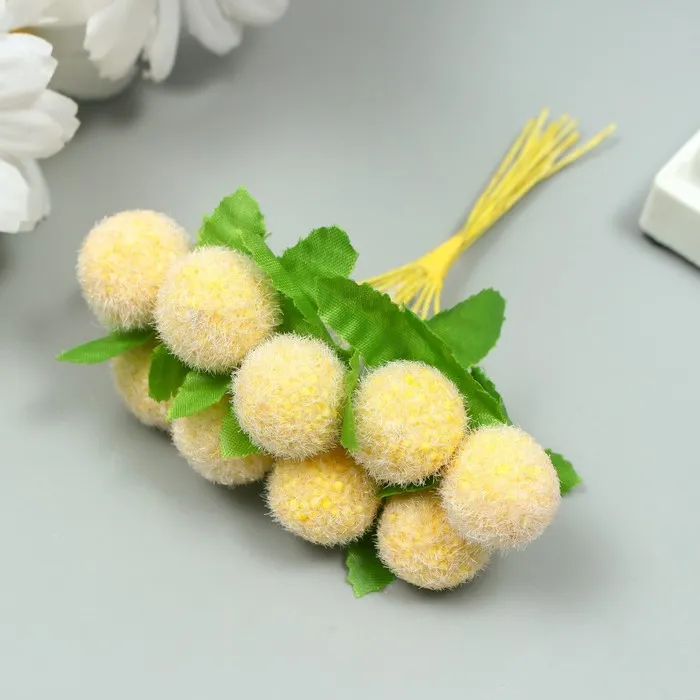 Тычинки для цветов "Шарик мохнатый жёлтый" d=1,5-2 см 1 букет=10 шт 10 см
