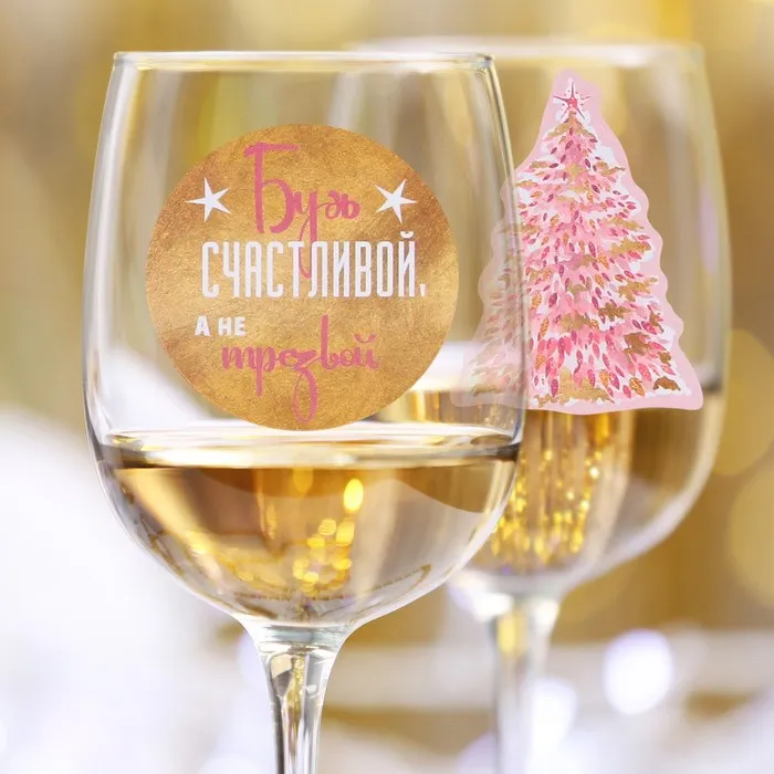 Наклейки на бокалы «Будь счастливой», набор 6 шт