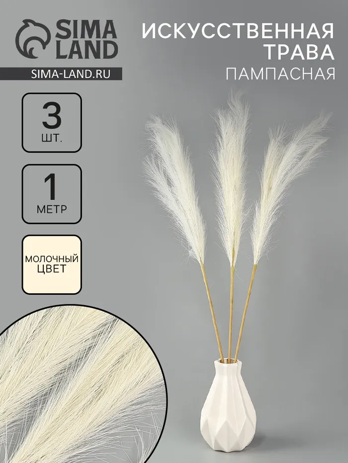 Сухоцветы искусственные «Пампасная трава», 1 метр, 3 шт., молочный