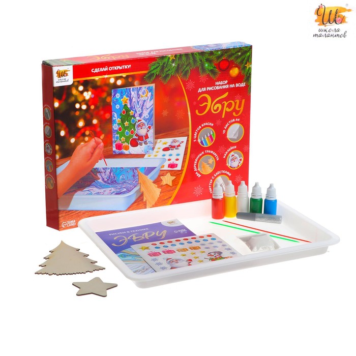 Набор для рисования по воде «Рисуем в технике Эбру. Новогодние открытки»