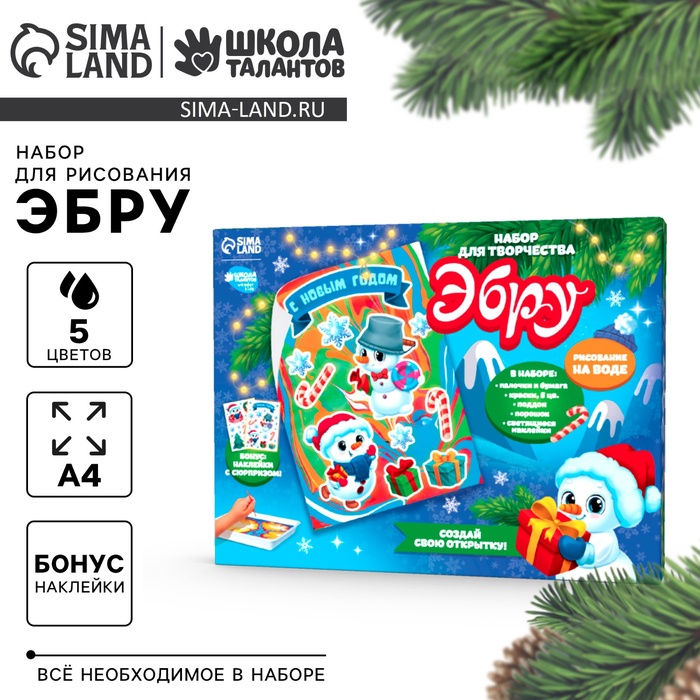 Набор для рисования эбру на новый год «Снеговик», набор для творчества