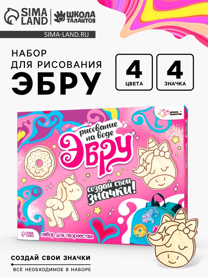 Набор для творчества «Рисуем в технике эбру, Значки из дерева: единорог»