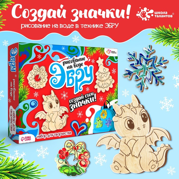 Набор для творчества «Рисуем в технике эбру. Значки из дерева: новогодний дракончик»