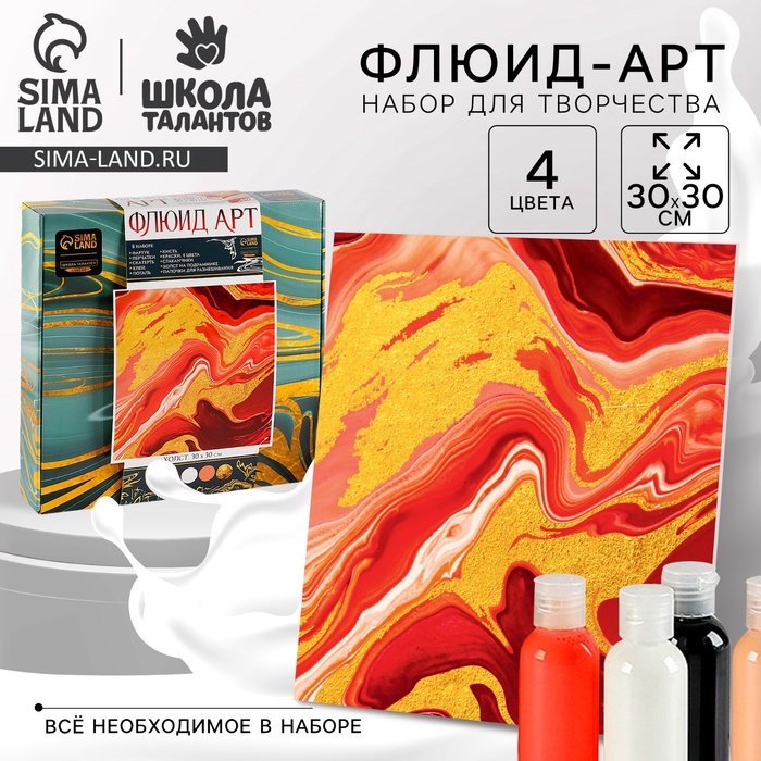 Набор для творчества. Флюид арт. Рисование акрилом на холсте с поталью «Закат»