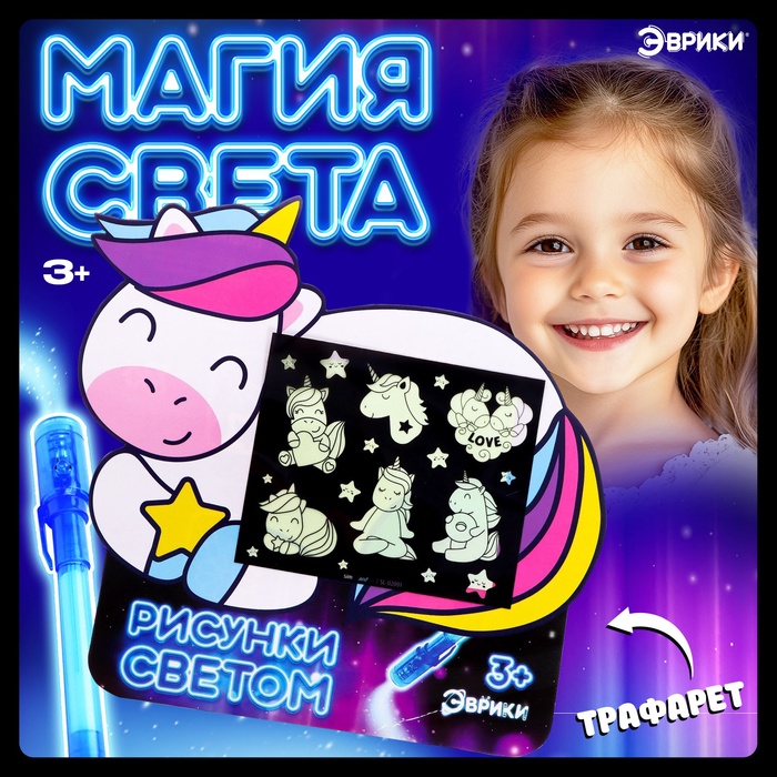 Набор для рисования светом «Единороги», ручка с фонариком и невидимыми чернилами