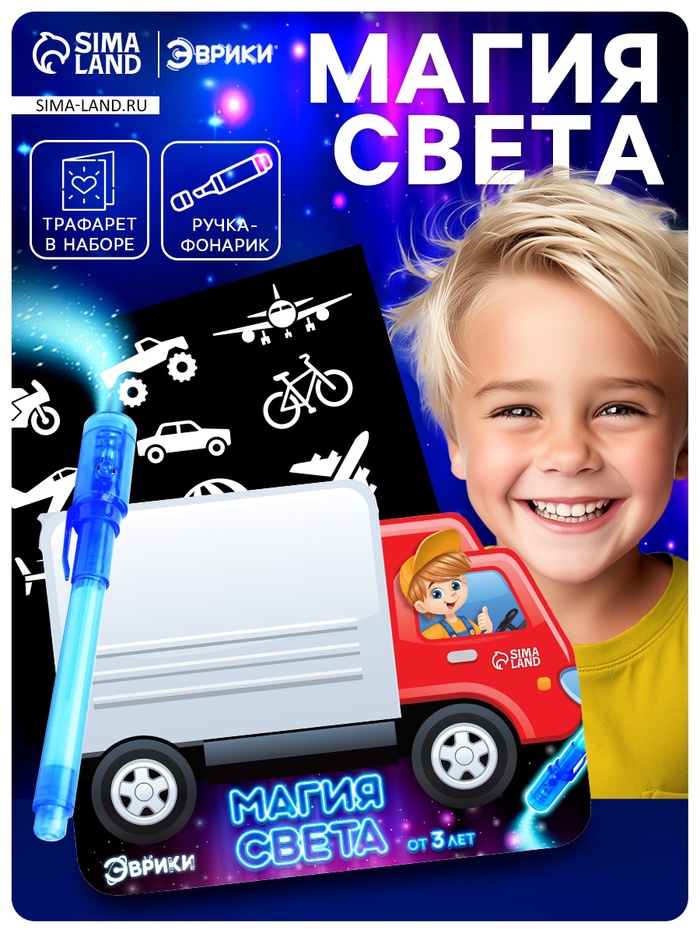 Активити-книжка с рисунками светом «Транспорт», ручка с фонариком и невидимыми чернилами