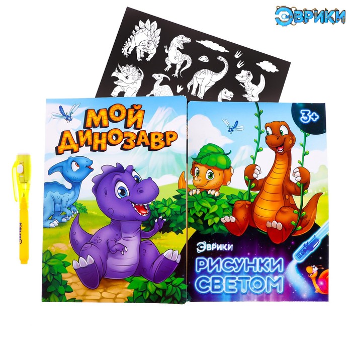 Набор для рисования светом «Динозаврики», ручка с фонариком и невидимыми чернилами