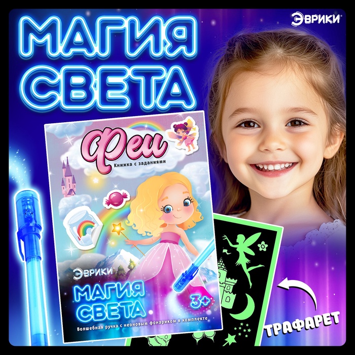 Активити-книжка с рисунками светом «Феечки», ручка с фонариком и невидимыми чернилами