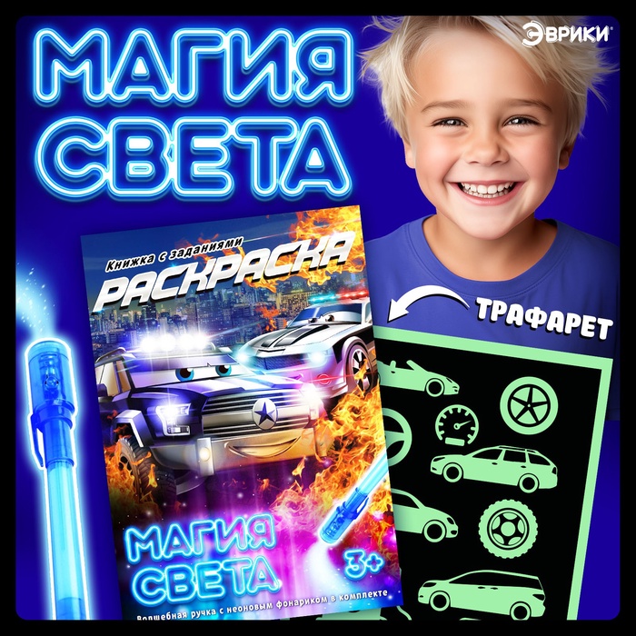 Набор для рисования светом «Тачки», с наклейками и раскраской, ручка с фонариком и невидимыми чернилами