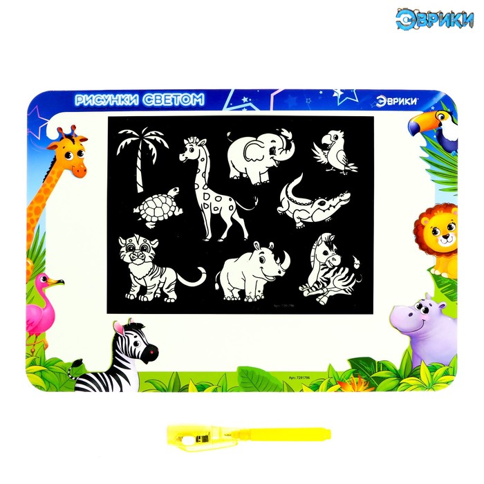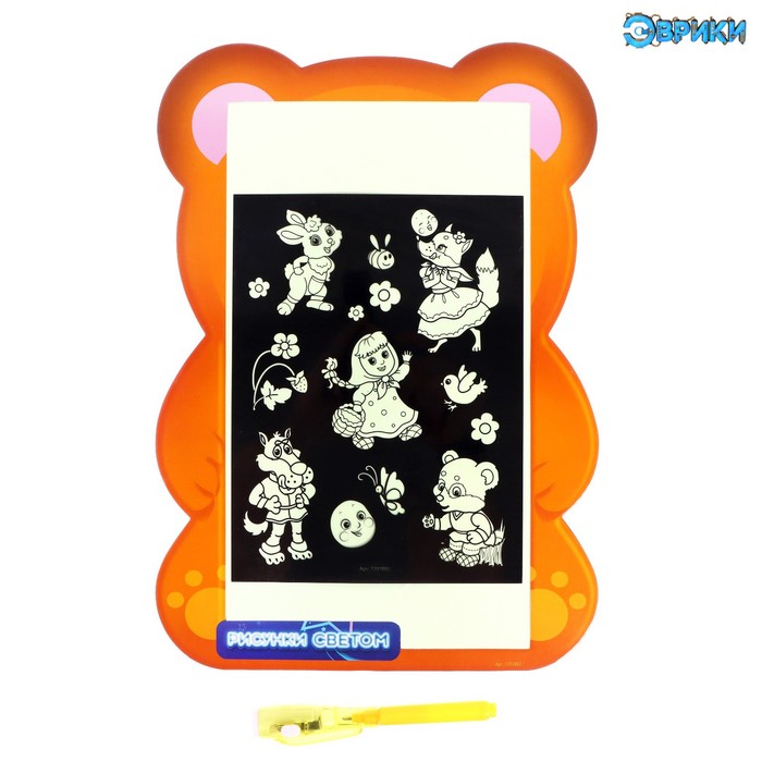 Набор для рисования светом «Зверята» + доска напиши и сотри, ручка с фонариком, маркер