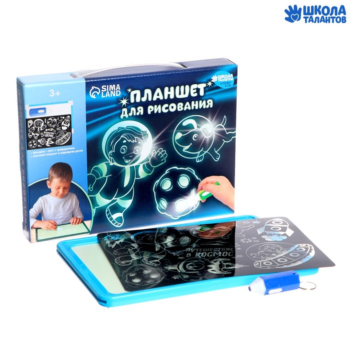 Рисуем светом. Набор для рисования в темноте «Волшебство», голубой, А4