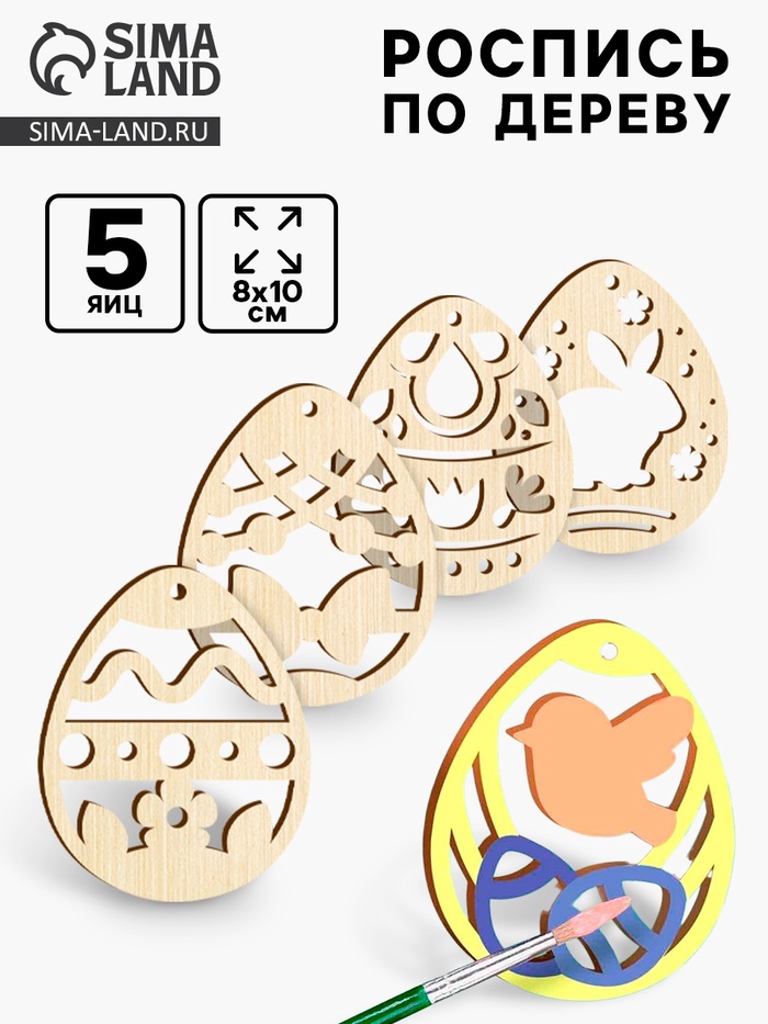Заготовки для творчества. Роспись по дереву «Пасха: пасхальные подвески», 5 шт