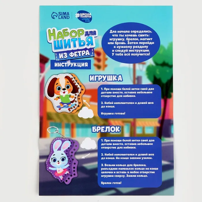 Набор для шитья. Игрушки из фетра своими руками «Милые зверята», с перфорацией