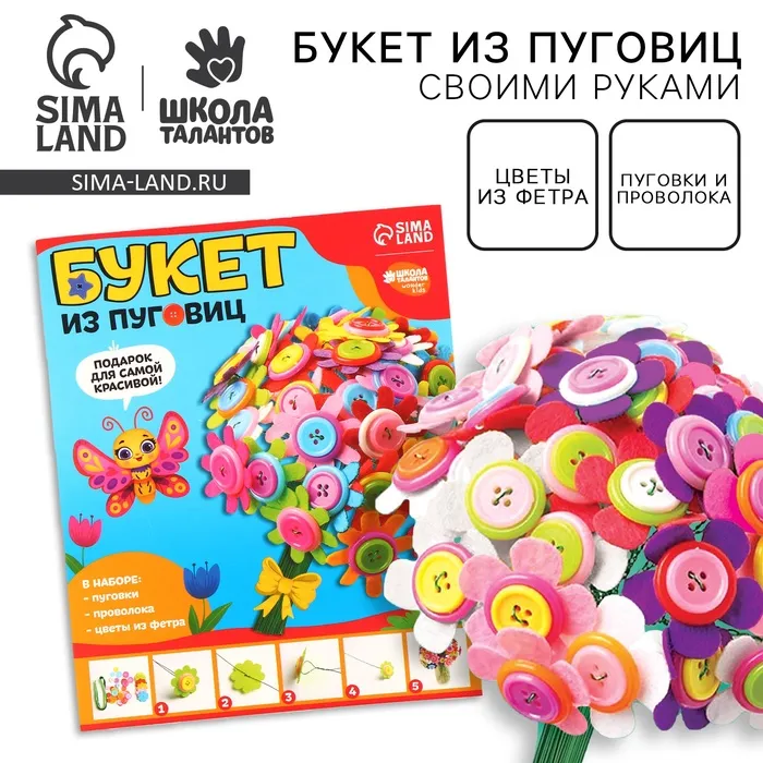 Набор для творчества. Букет из фетра с пуговицами «Пионы»