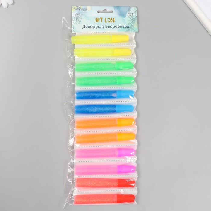 Глиттер клеевой, (набор 12 шт.), пастель с блёстками в тюбике, 10 г