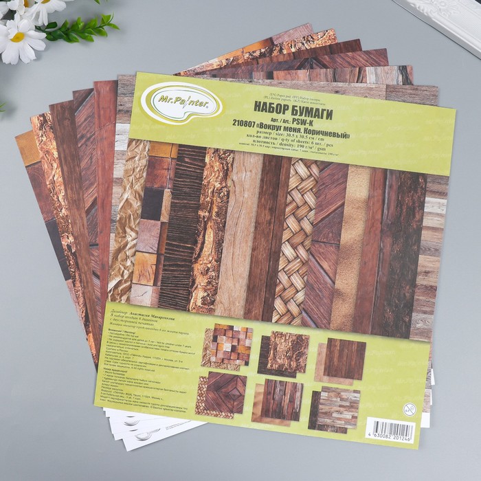Набор бумаги для скрапбукинга "Вокруг меня. Коричневый" 190 г/кв.м 30.5 x 30.5 см 6 л