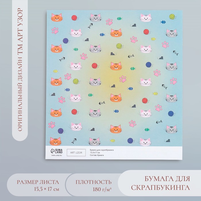 Бумага для скрапбукинга «Котята», плотность 180 г, 15.5×17 см